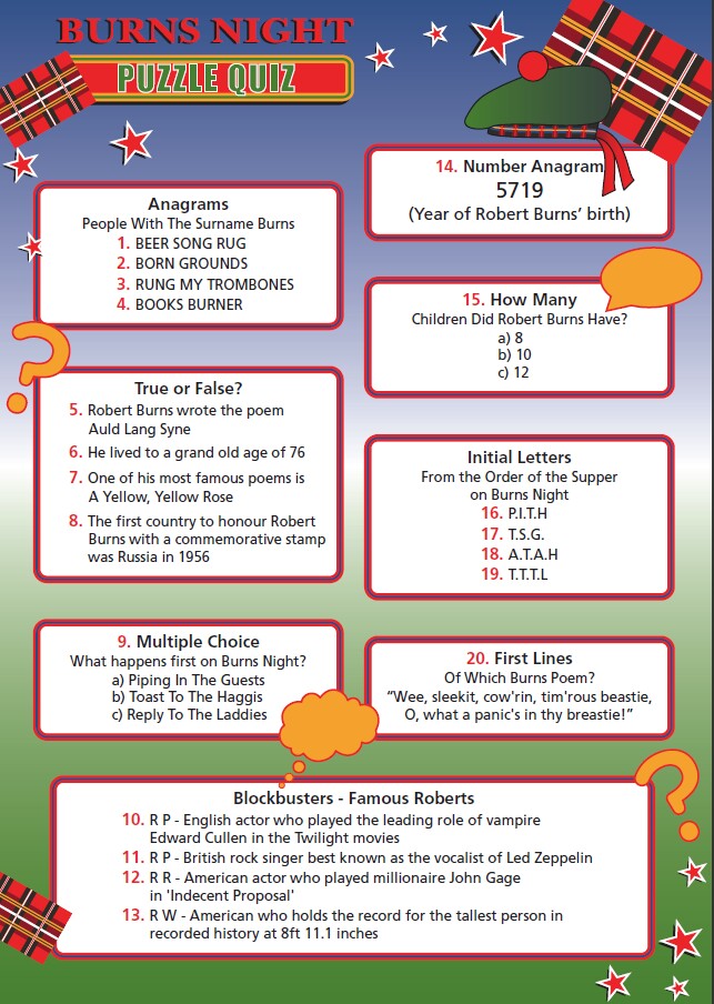 Just head over to Instant Quizzes to see our Burns Night Quiz selection!
