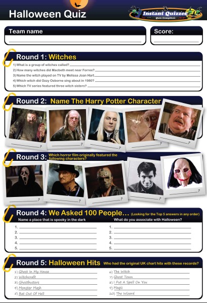 Looking for a some quick and easy entertainment this Halloween? Then grab one of our print-and-go Halloween table quizzes! No quiz master required – all these quizzes can be handed out for people or teams to complete at their leisure!