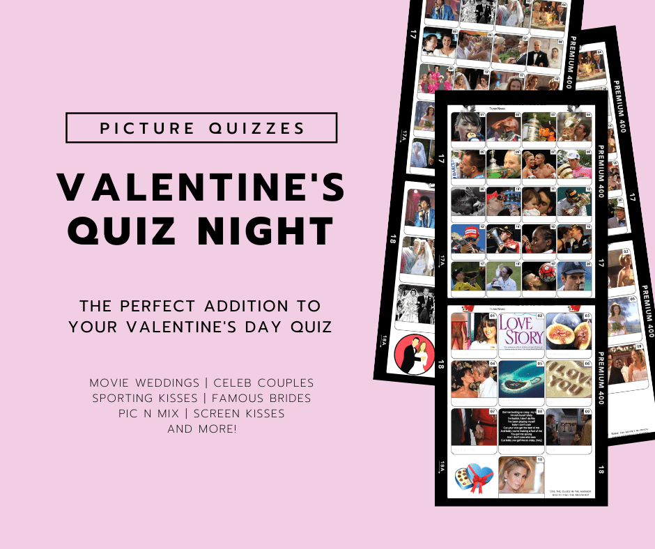 The perfect addition to your Valentine’s Day Quiz, featuring fun rounds such as Movie Weddings, Celebrity ‘Meet the Wife’, Chocolate Bars and the Valentine’s Pic n Mix, these picture quizzes are sure to stir up some passion at your Valentine’s Day Pub Quiz!