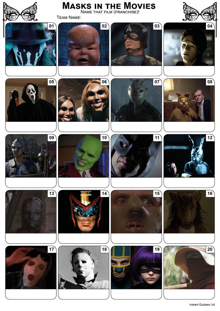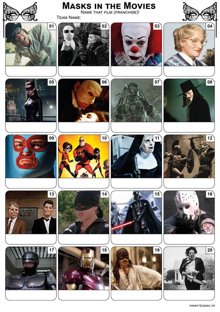 As this year’s hottest accessory, face masks are everywhere but quite a few movies were apparently ahead of their time! In this picture quiz, teams will have to identify the films that each famous masked character comes from, Mrs Doubtfire to V for Vendetta. We have two 20-picture quizzes to choose from or four 10-picture quizzes!